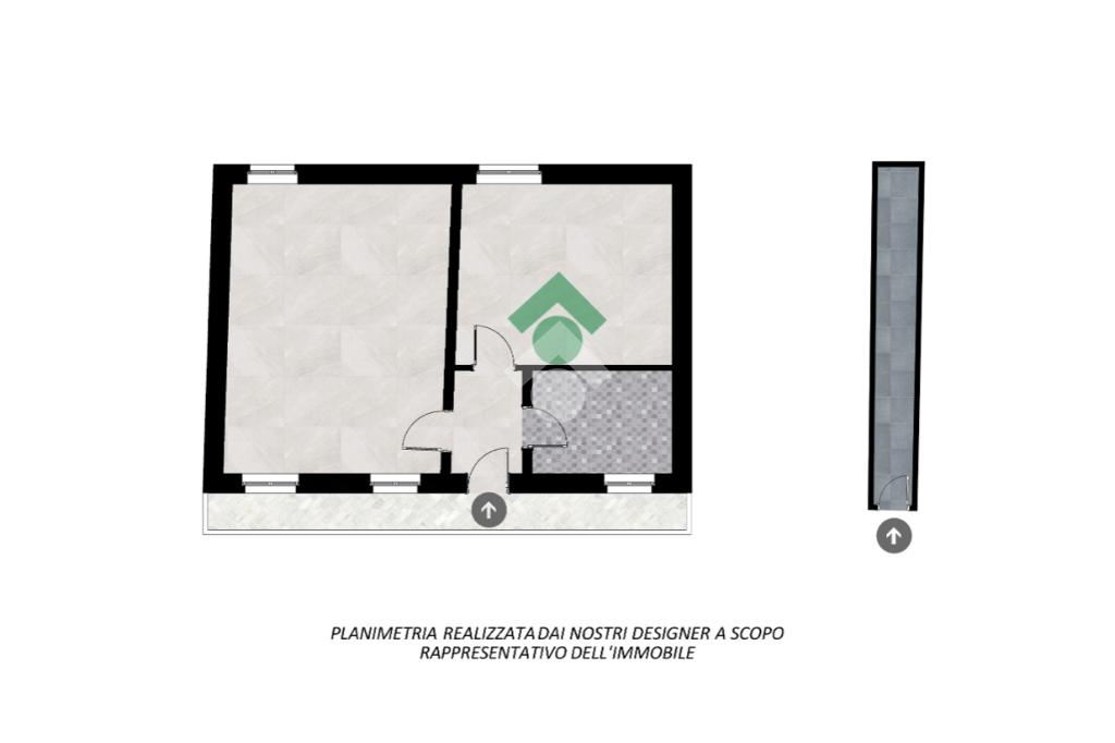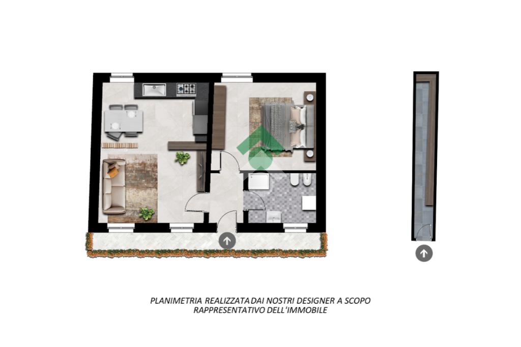 All'interno la zona giorno è stata suddivisa tra cucina e soggiorno con degli arredi a giorni, utili. La camera è ampia e ben arredabile. Il bagno, con doccia, si presenta in perfette condizioni.