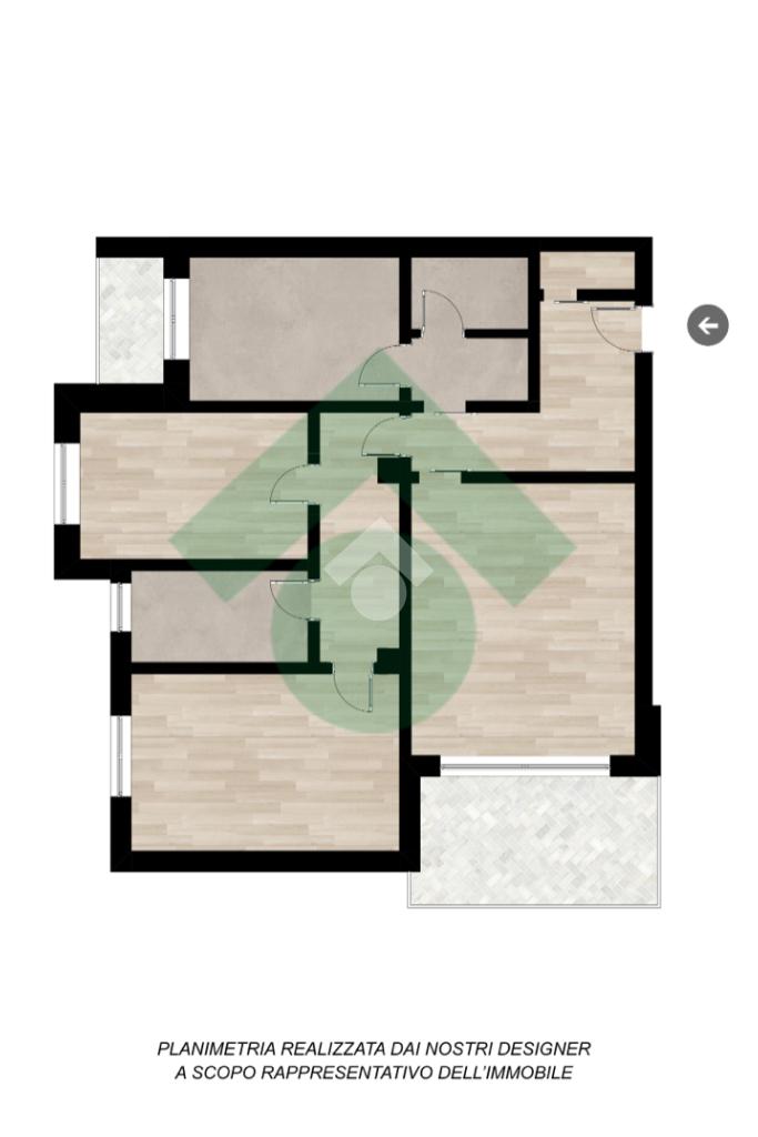 Trilocale con cucina abitabile, terrazza, doppi servizi, ripostiglio, cantina e box